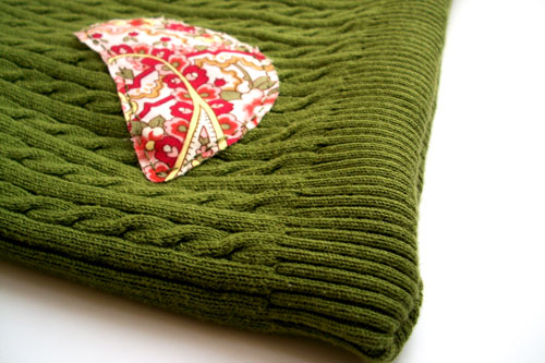 包包的长宽取决于你开始准备的毛衣大小,我们这里做的是15英寸宽,12英寸高。如上图所示,我们把毛衣下面量好尺寸后剪下来。 在毛衣的右下角我们贴上从印花布上剪下来的小鸟。 我们给这个包包用印花布做一个内袋,...
