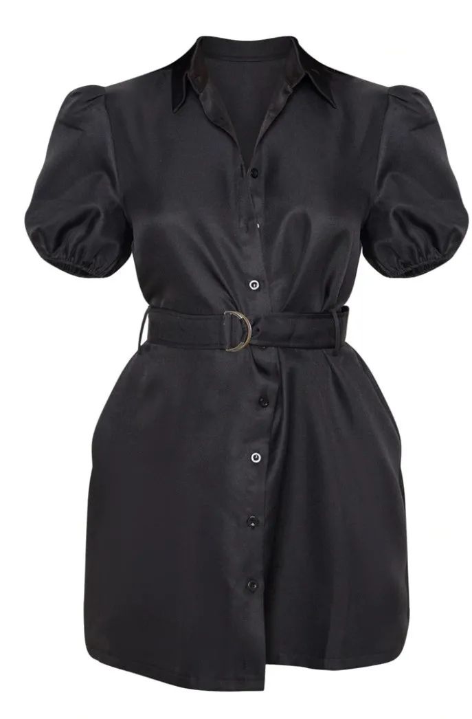 PrettyLittleThingBLACK PUFF SLEEVE BELTED SHIRT DRESS参考价格:£21