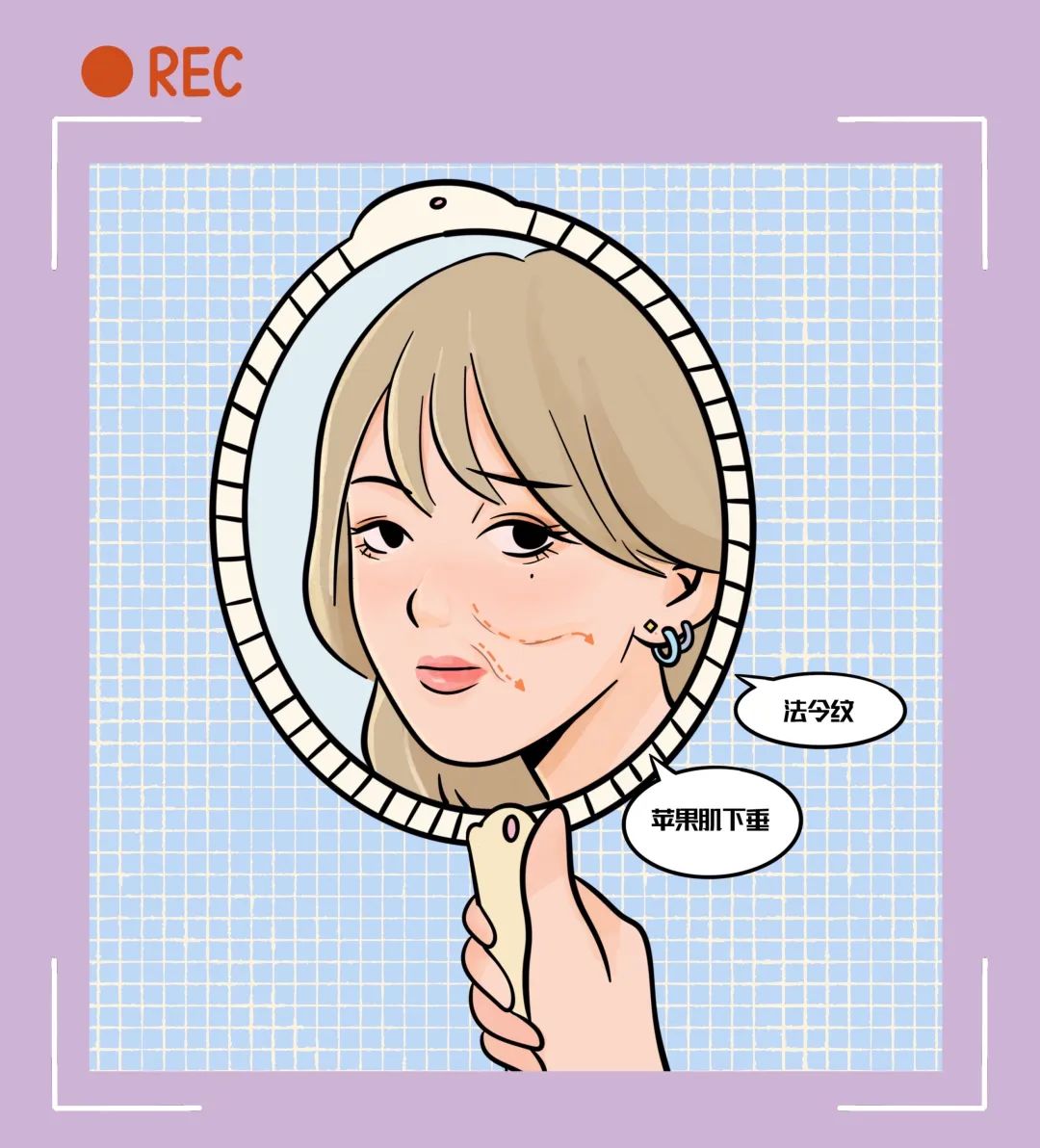 ╱ 你的中面部发生了什么?╱中面部(包括苹果肌和颧骨整个面中段)是轮廓美的重点,如果我们中面部出现老化下垂——苹果肌下移松弛、法令纹、颧颊沟和泪沟,整体的轮廓之美被破坏,就算拥有大师级修容技术也难以回春……