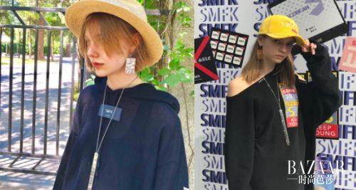 独得毛晓彤恩宠的一款棒球帽非SMFK的Lightening闪电黑色棒球帽莫属,以闪电涂鸦的形式,把内心独白表述给世界,诉说时间的快如闪电,那就enjoy this moment享受当下吧。
