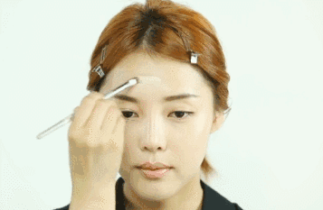 用刷子蘸取高光刷在双眼下方和眉毛尾部下端的眉骨处