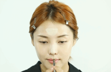 用刷子蘸取高光刷在人中和上嘴唇的交界处及下巴