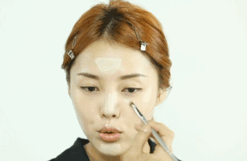 高光涂在脸部想要突出的地方,比如前额,眼下,鼻梁和嘴唇下方等