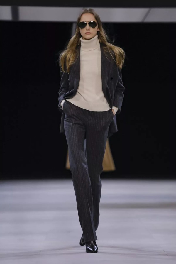 在这次成衣秀上,Slimane也让这骑术长靴华丽回归,不仅完美符合当下高筒靴的潮流。而且巧妙的又融入了个人风格,在传承的基础下搭配复古水洗牛仔裤和膝上毛呢裙裤展现摩登印象。