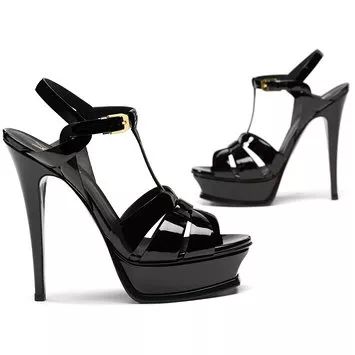 鞋类设计师Francesco Russo自2000年进入圣罗兰,设计了很多款经典的高跟鞋。其中较为著名的便是Tribute--螺旋形花纹的防水台细高跟鞋,Tribute将2000年的高跟鞋趋势推向极致。