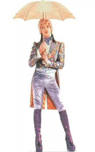 防水台高跟鞋曾一直代表着前卫激进的“Glam Rock”,这是在20世纪70年代初,英国发展起来的一种具有强烈视觉效果的摇滚乐风格,音乐家会穿着华丽妖艳的性别模糊的服装,特别是防水台高跟鞋和闪光颗粒与亮片,配上艳丽的化妆和发型,展现着颓唐华丽轻浮的台风。