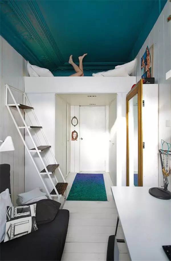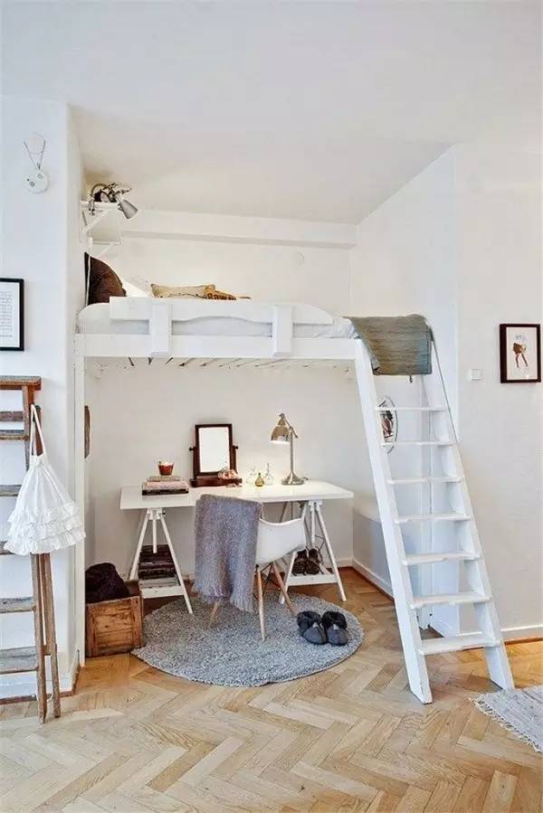 把原本床占领的空间挪到空中,而床下的空间就可以用来储物、办公、学习......一切都妥妥的。