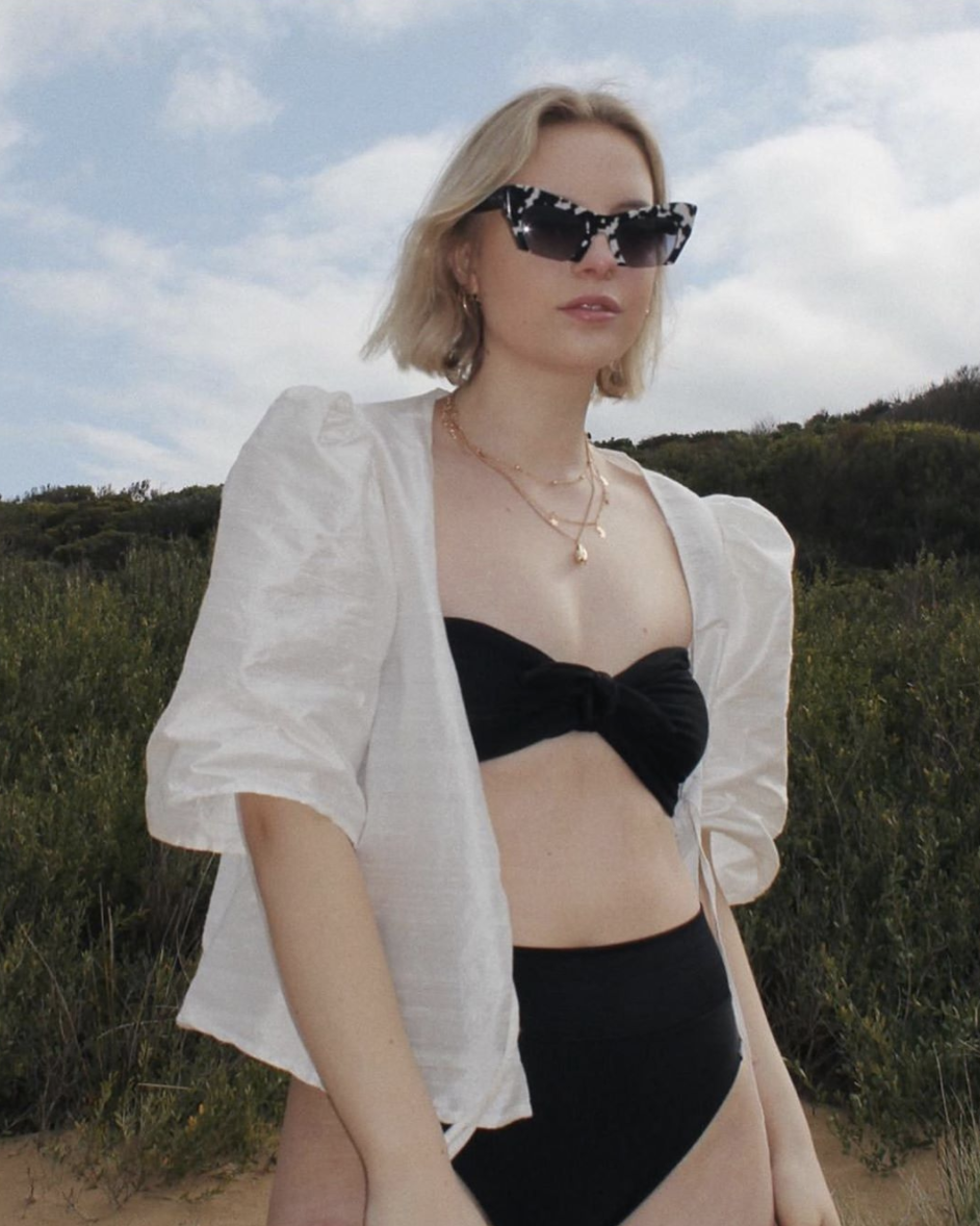 说起度假风里的灵动色彩,来自洛杉矶的小众品牌STAUD也是必须要拥有姓名,具有防晒功能的成衣个个都很养眼。