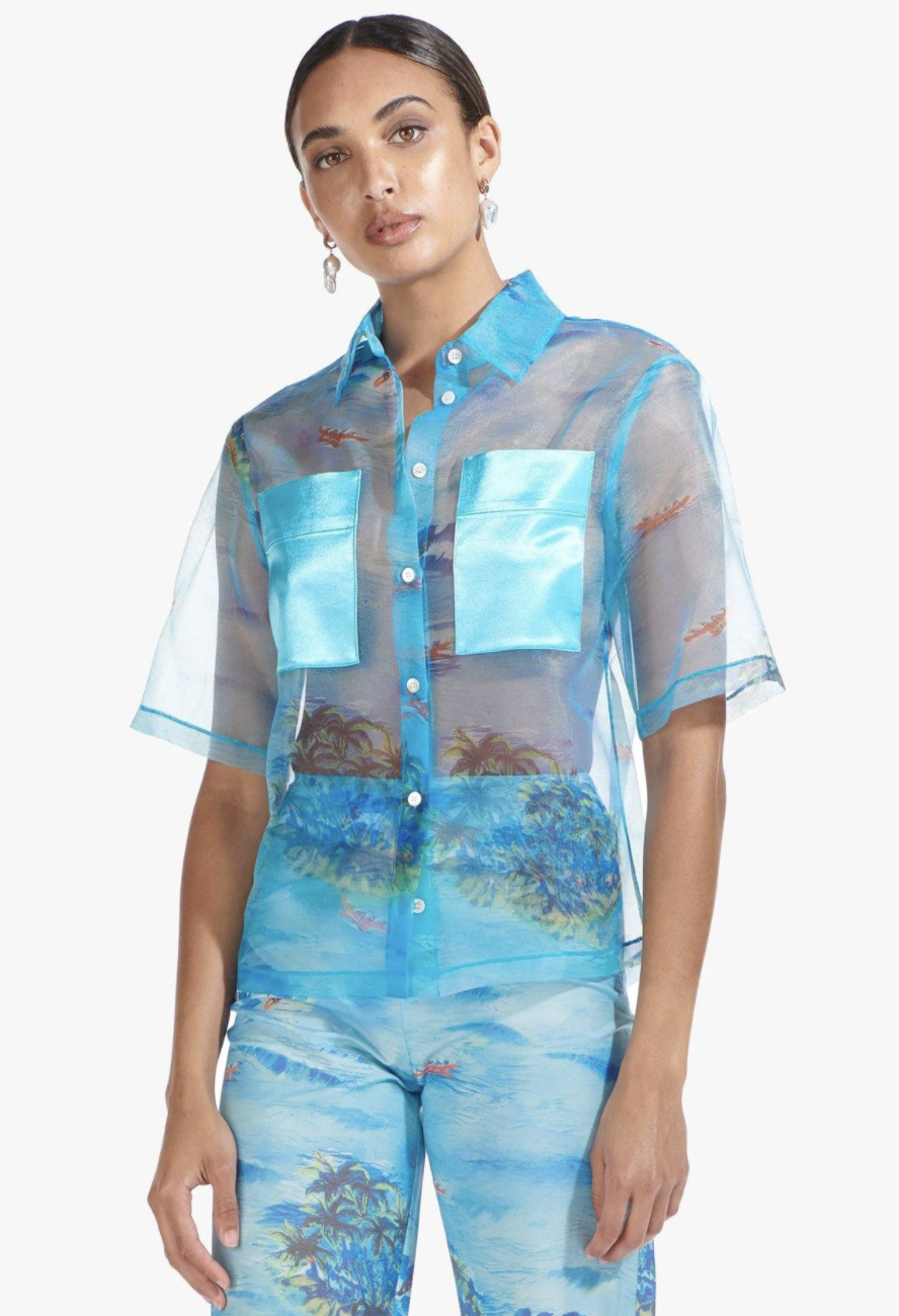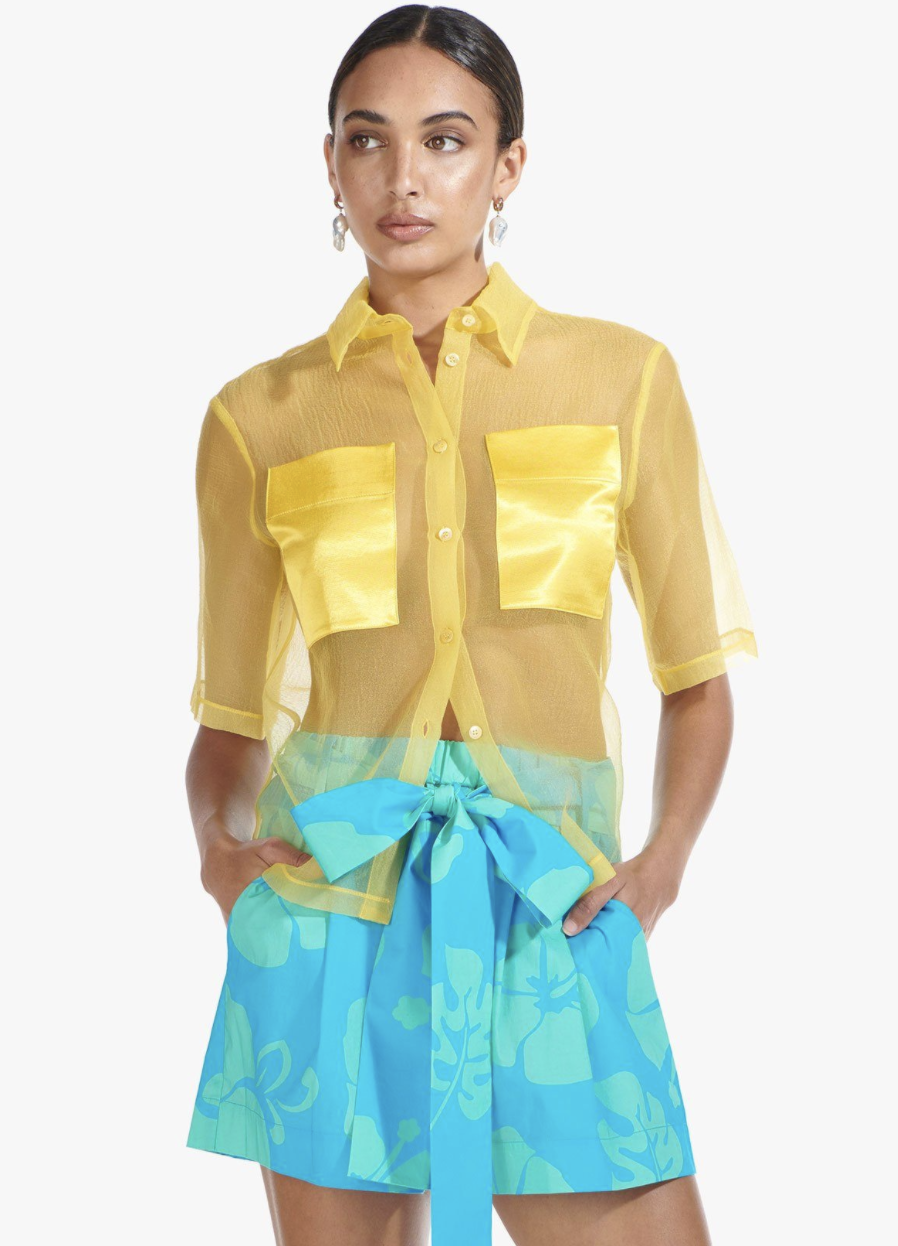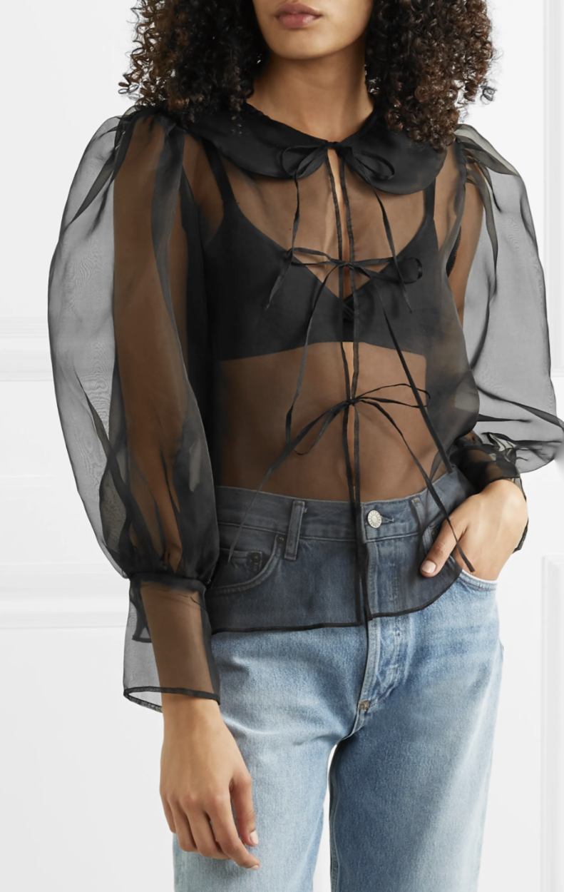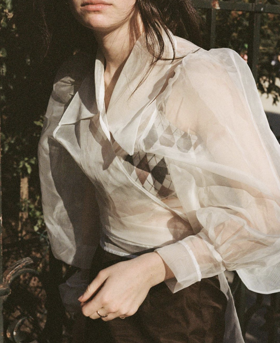 除了真丝与棉质材质,薄纱款衬衫在夏天上身也很舒适又透气,拥有了它们就妥妥地get到了时髦精的防晒外套!