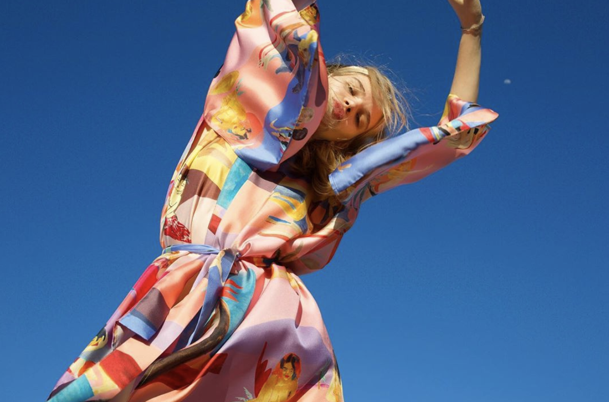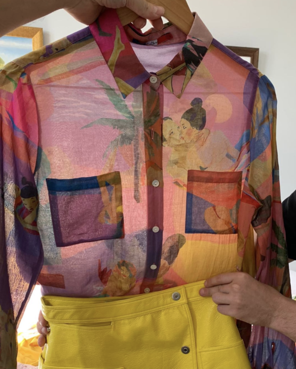 而为了让每件衣服上的印花都有手绘的笔触,Marguerite Bartherotte也一直坚持在布料上创作,再使用数位摄影方式将画作转为电子档进行印刷。