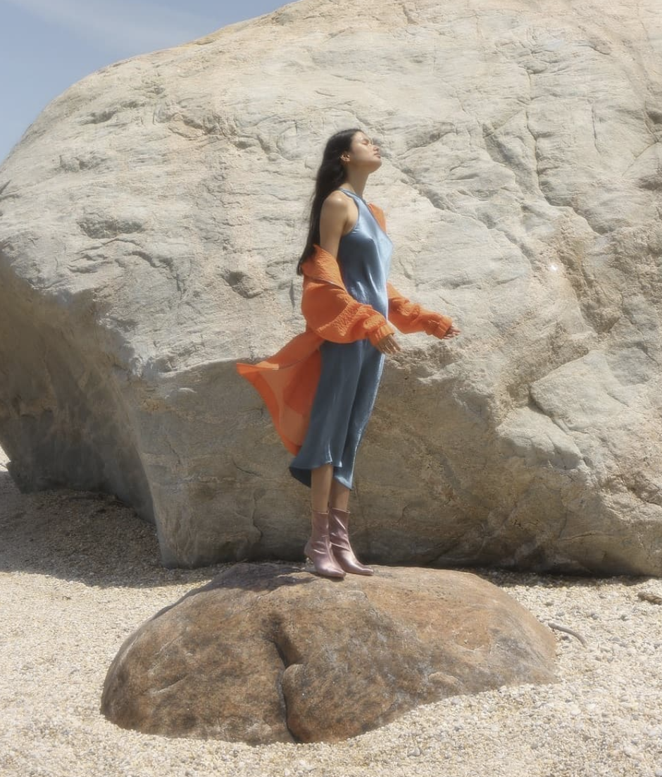而NOMIA的涵义是希腊神话中居于山林水泽的女,设计师也赋予了防晒成衣柔美又慵懒的质感。