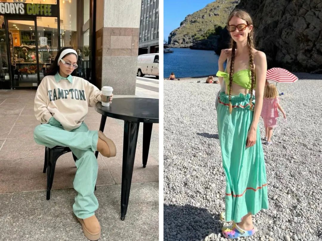 想要为整体造型增加一些轻盈感?薄荷绿的长裤就像自带滤镜,低饱和度的颜色不仅显得下身更轻盈,还能带来一种降温的视觉效果。