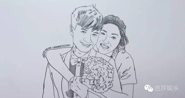 去年7月,他们在拉斯维加斯注册结婚,昨天才正式补办了喜宴。整个喜宴温馨又浪漫,背景墙上印着二人的英文名,现场还有古巨基亲手画的他们二人的画像,连喜宴所用的蛋糕都是古巨基亲手做的