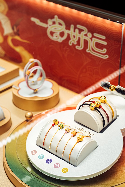 老庙一串好运全新系列,对应“福”、“禄”、“寿”、“喜”、“财”五运,分别选取寓意美好的传统元素,结合现代审美加以创新演绎,打造款式多样的黄金转运珠,并结合五种经典的东方色彩,呈现一系列配色灵动、兼具潮流时尚感与趣味性的新中式手饰,为年轻人带来“转”不停的好运祝福。
