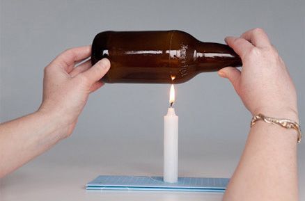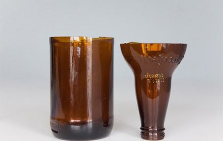 然后是用火加热瓶子,最后用冰领冷却,借助热胀冷缩使玻璃沿着第二步骤的裂口裂开,一个酒瓶花器就做好了!