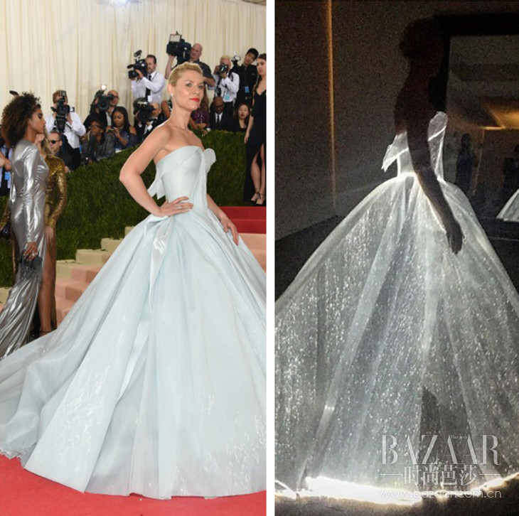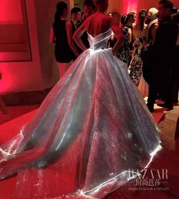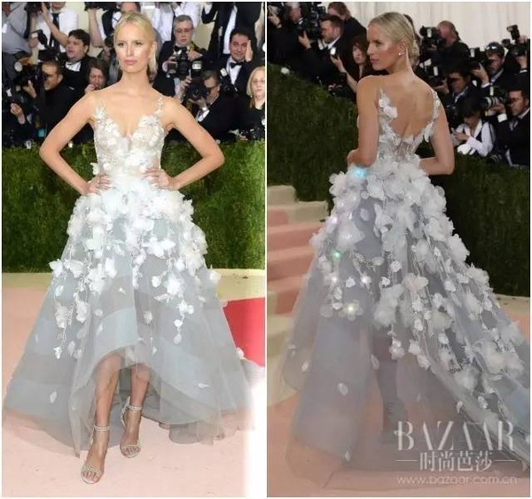 芭姐认为,真正切合今年Met Gala主题“手工X机械:科技时代的时尚”还是Karolina Kurkova的LED裙。乍看之下好像就是用led灯缝制的花朵,大家觉得这种开灯亮起来的效果,还是没有Claire来得梦幻。