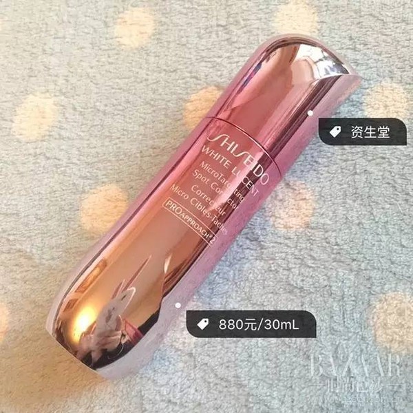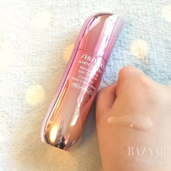 樱花粉的瓶身超级美,外貌协会必收。一次用两泵的量,挤出来是半透明的液体状,先全脸涂开,再在斑点部位重点按摩。