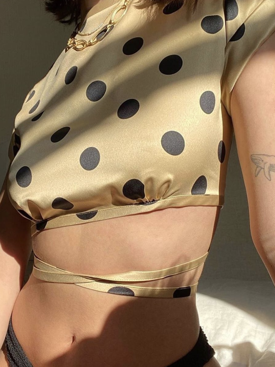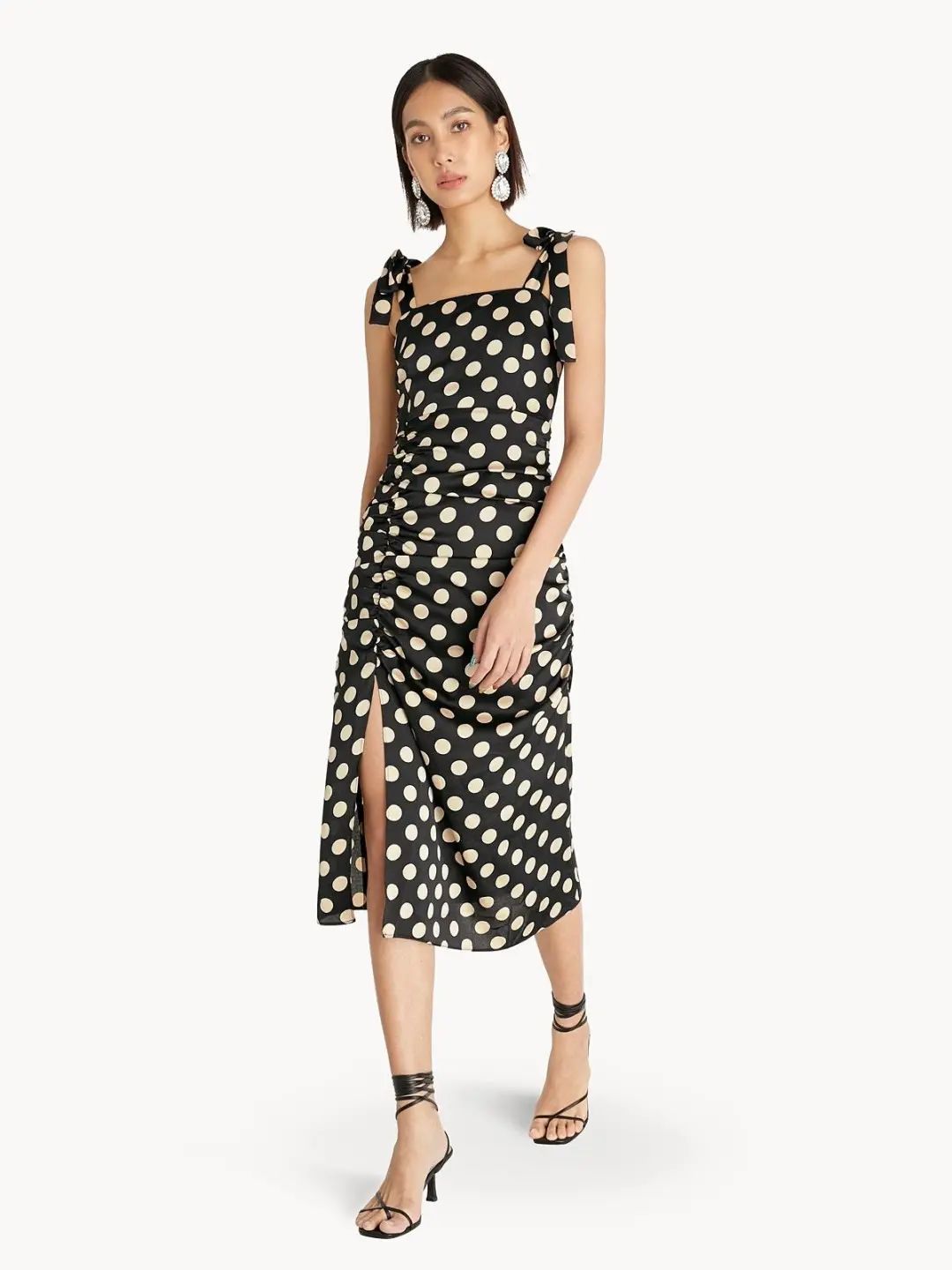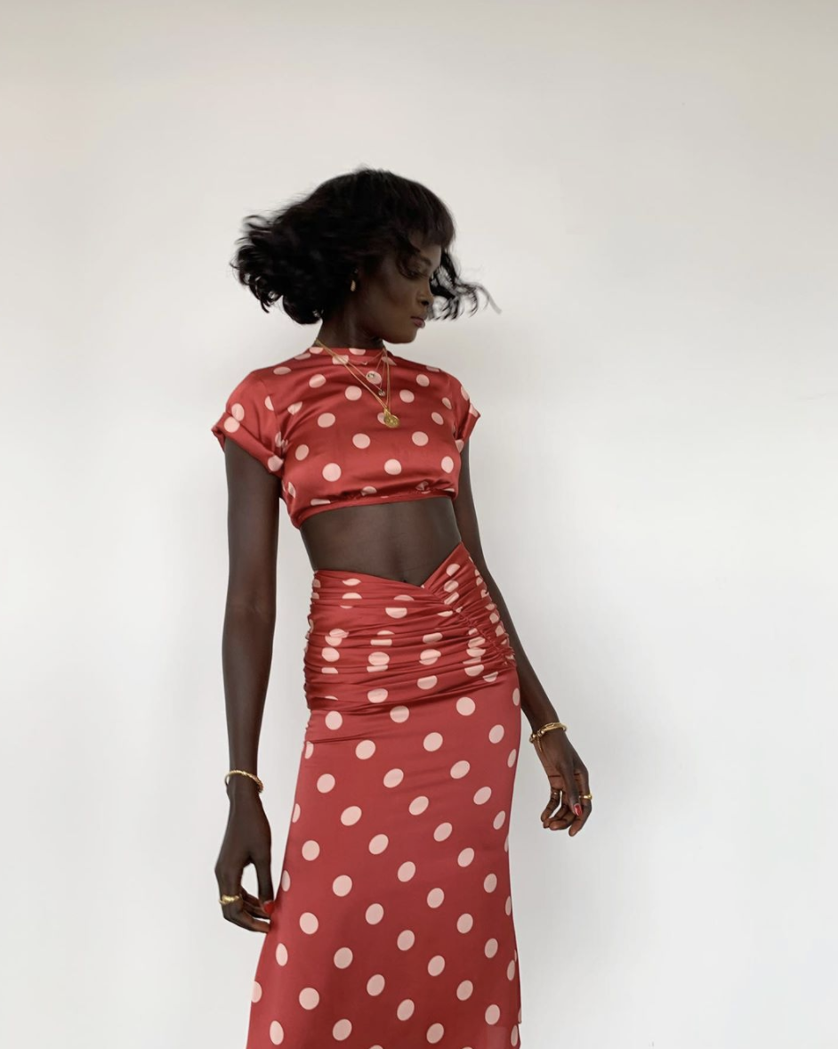 将现代的剪裁和复古风的波点结合在一起,即使是最简单的黑白搭配,也能充满夏天浪漫又活泼的气息。