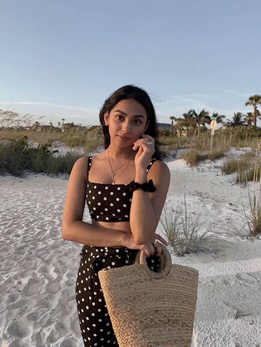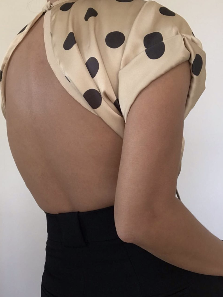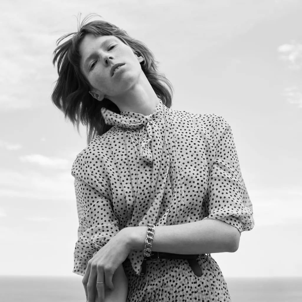 将现代的剪裁和复古风的波点结合在一起,即使是最简单的黑白搭配,也能充满夏天浪漫又活泼的气息。