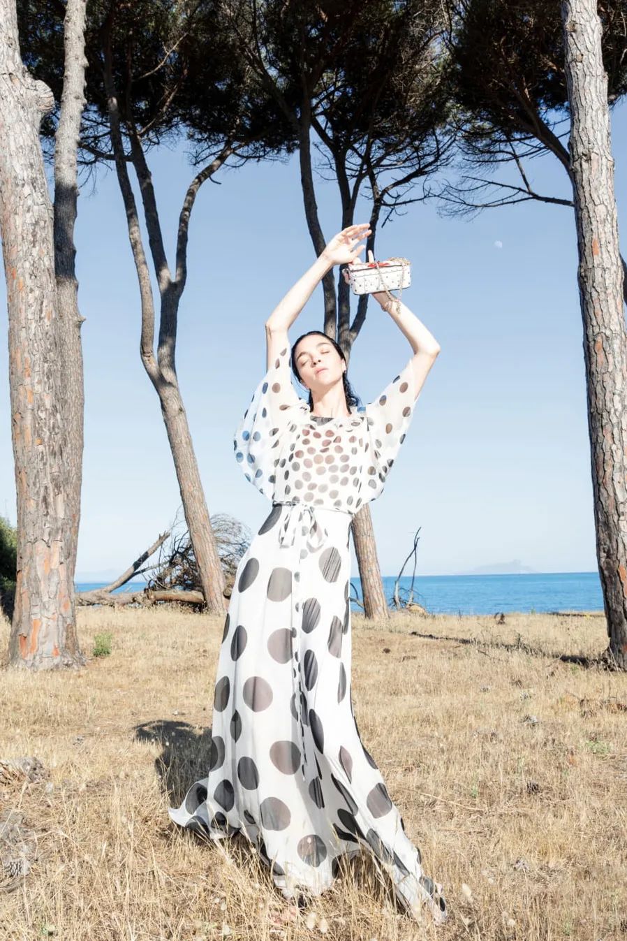 MARCIA今年的春夏系列也展示了细密波点减龄的妙处,低调的藏蓝底色搭配简约的白色波点,怎么看怎么舒服。