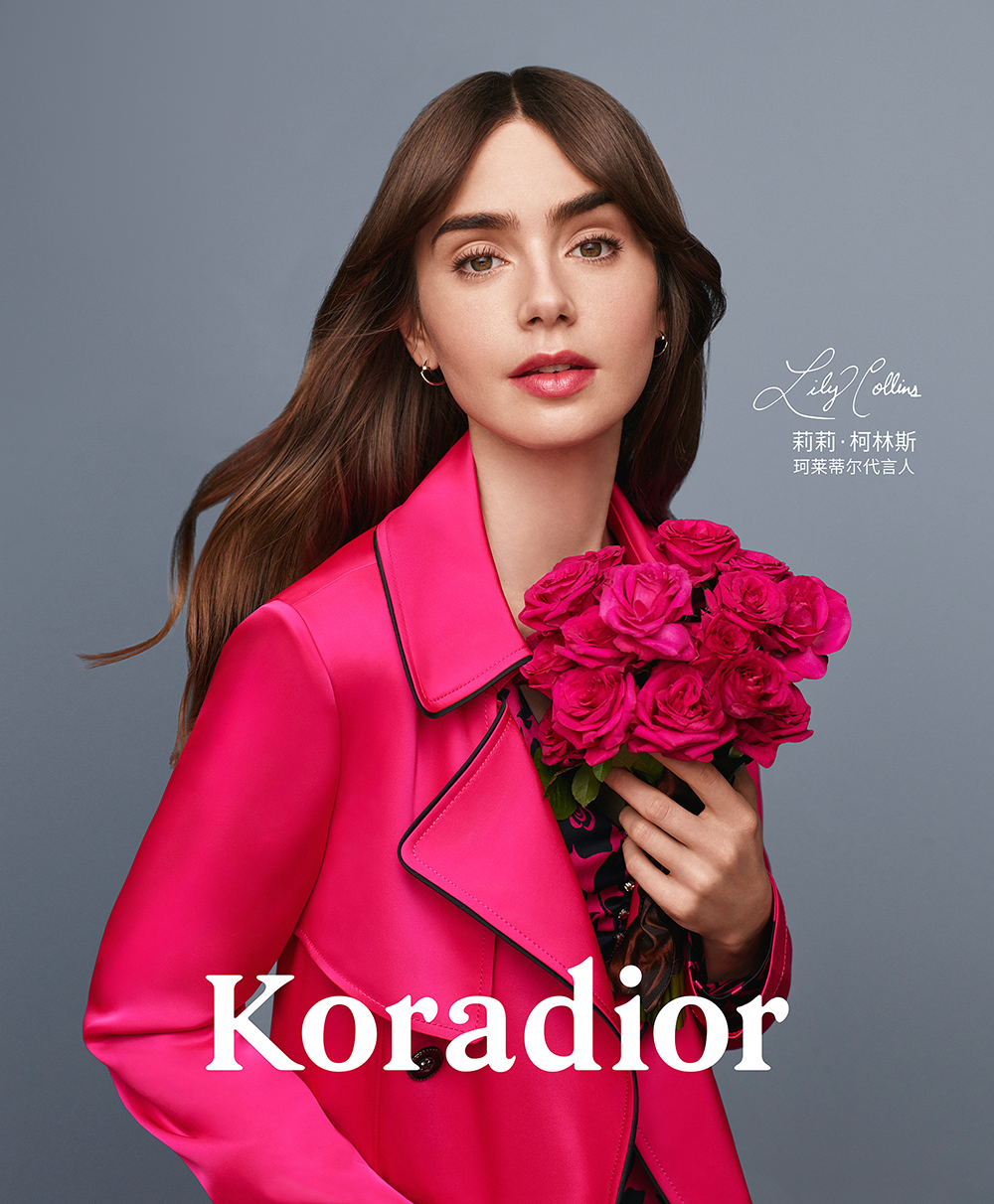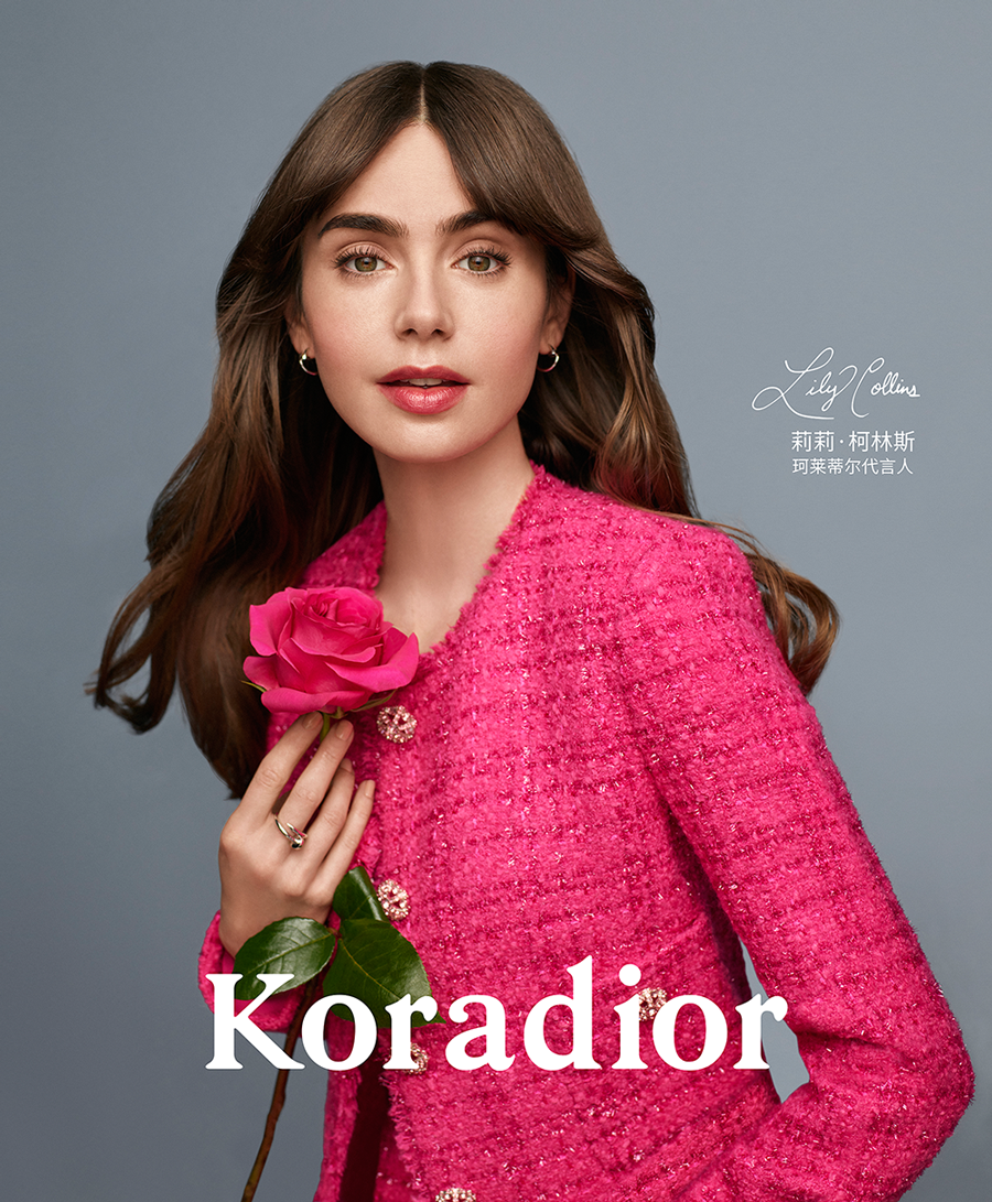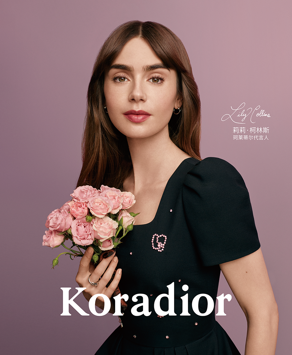 银幕前的莉莉·柯林斯Lily Collins才华横溢,专注自己热爱的事业,魅力十足,不仅一步步蜕去自己“星二代”的身份标签,还通过自我成长学会了如何爱与被爱;生活中的她关注自我,享受生活,传递美好,她在自传《真实的莉莉》中写下的“你终将成为你应该成为的人”,鼓励着千千万万的女孩做自己会光芒万丈,以一种自洽的方式讲述着她的生活美学,宛如代表一切美好的浪漫玫瑰,自在绽放,这与珂莱蒂尔Koradior打造的女性形象高度契合。