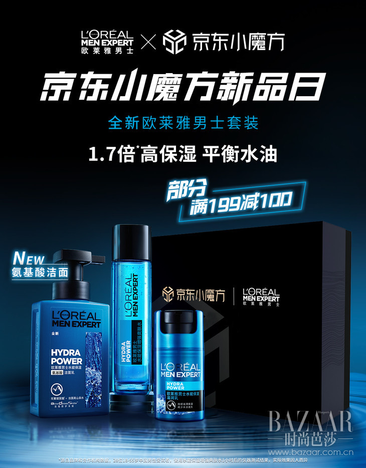 近日,欧莱雅男士推出首款水能保湿氨基酸洁面乳,并与“京东小魔方”再度联手合作重磅推出护肤小魔方礼盒——全新欧莱雅男士套装。