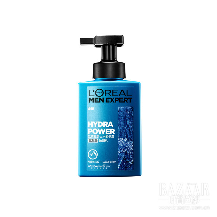欧莱雅男士全新水能保湿氨基酸洁面乳富含三重核心活性成分,为皮肤注入水能量,温和亲肤,卓效补水,维护皮肤屏障。1.7倍高浓度日本进口氨基酸洁面成分,敏感脆弱肌也适用,成分温和,自然亲肤。双重玻尿酸饱满澎弹,大分子玻尿酸1000X锁水力,海绵式锁水,长效保湿;小分子玻尿酸以1/20小分子,直达肌底,密集补水。富含9种矿物元素的10X高浓度法国高山泉水,集中补水,深层润透,清润保湿。