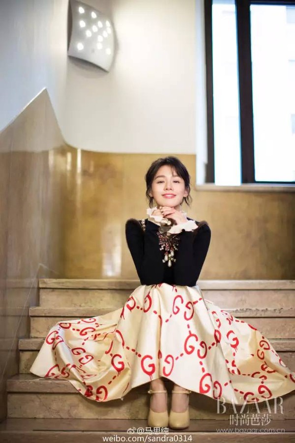 马思纯这身少女心爆炸的裙装,拼接的花边袖子让这她看起来更加甜美乖巧~