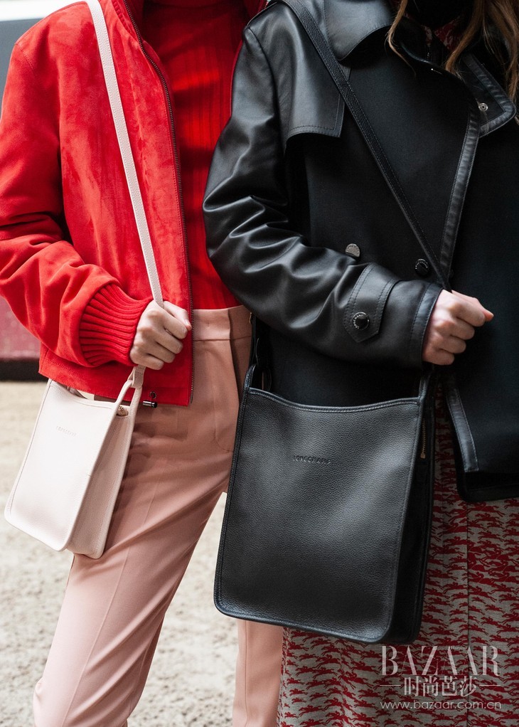 2021秋冬全新的Le Foulonné系列主要分两款:其中一款Le Foulonné采用方形外观,轻薄设计的斜挎包,散发着微妙中性气息,饱含着巴黎时尚与动感马术的精髓,包身上连接可调肩带和挎包的环并非常见金属材质,而是高级皮革材质,整个包唯一使用五金材质的地方只有一条半隐藏式拉链,以及肩带上的一颗细长马镫形搭扣。最后是精心压印在Le Foulonné独特纹理上的Longchamp标识,从细微之处向经典马具和Longchamp传统工艺致敬。