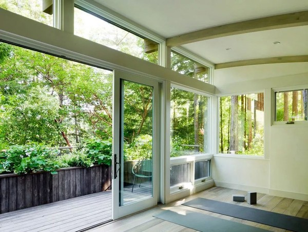 两户人家就构成了一组友好的邻里,一个微观的社群。这座位于美国加州米尔谷的迷人小屋就是为了两个独立的业主:一位艺术家和一位狂热的园艺及瑜伽爱好者而设计。