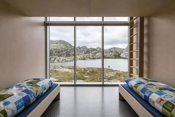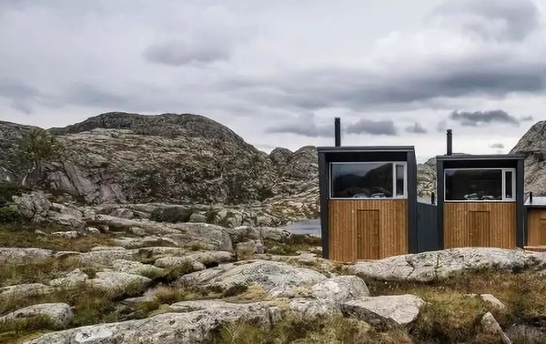 而挪威的这35个自炊式山中度假屋,则将山区荒无人烟的极简物质生活体验做到了极致。建筑的水取自临近的湖泊,无供电设备;主楼、卧室和桑拿房使用木材生火取暖,厨房备有两个燃气灶具用于做饭,太阳能板则为厨房提供灯光。