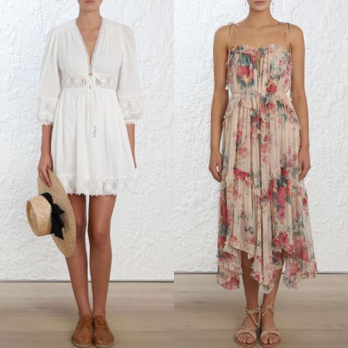 如果是海岛婚礼,那么就选择Zimmermann,Free People这种品牌,雪纺,蕾丝,印花都非常度假风情。 Isabel Marant的流苏裙,Chloe的仙女长裙都能为你的整身搭配和愉悦心情加分。
