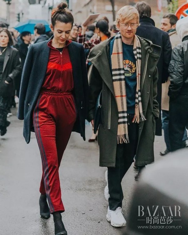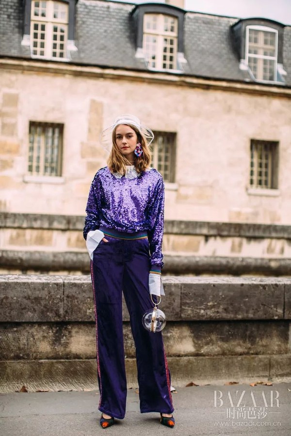 还能给运动套装“再加点戏”,比如自带材质相撞的套装,更是时髦有趣。卫衣的亮片材质与长裤的缎面相撞,运动套装造型中多了几分精致时髦。