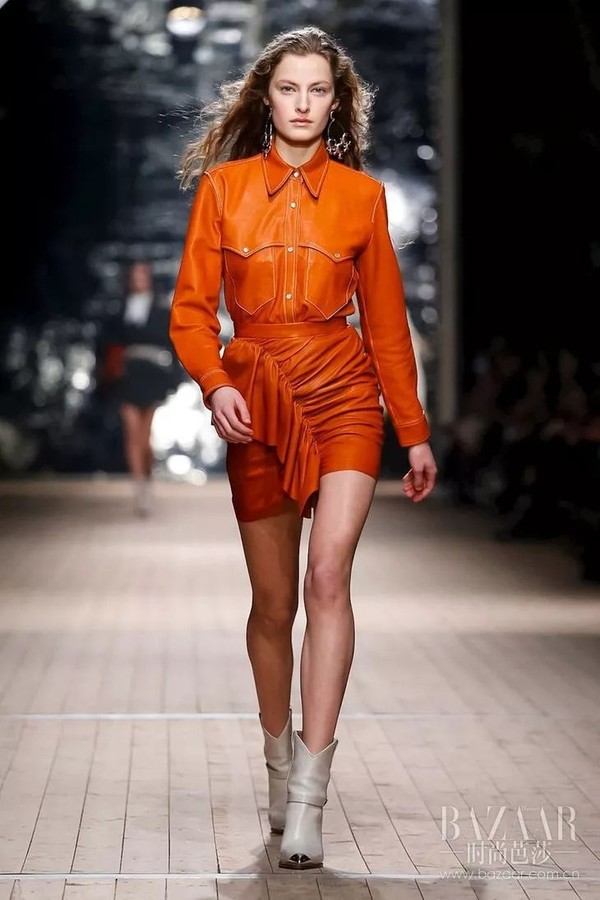 也不一定要那么 Drama 的皮衣套装才摩登时髦,像Isabel Marant 这种简单利落的皮衣套装也足够帅气优雅。简单的衬衫,略带设计感的包臀裙,不过分的精致时髦。