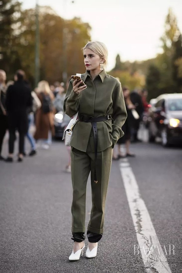 享受完多种风格套装的视觉洗礼,时装精还有一个时髦的小诀窍。无论是什么风格的套装,系上一套腰带都能让比例更出彩,时髦得更有小心机。