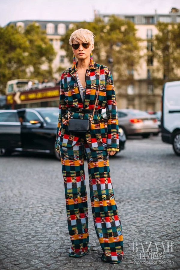 现在不仅有许多“正经”的格纹,还有很多像这种缤纷色彩、图案拼接的“不正经格纹”,设计多一种可能性,时髦就能变得更有趣。
