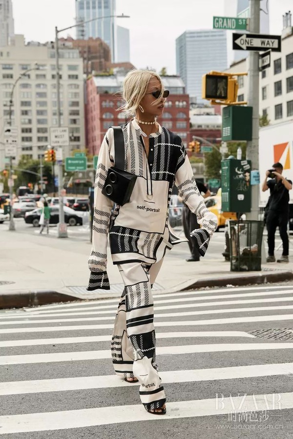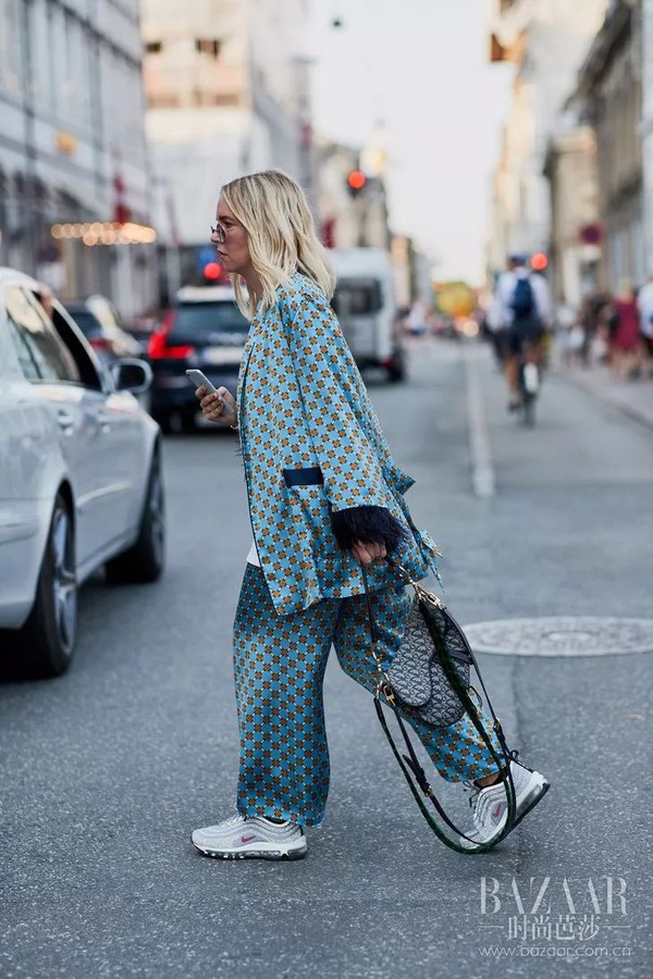 穿上整齐排列的印花套装,哪怕是“睡衣”款式,精致时髦度也一分不减。