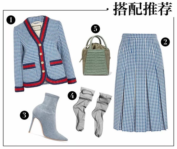 除了格纹以外,还有一个图案也相当经典时髦——千鸟格。千鸟格套装比起格纹套装,更富复古优雅气息,是文艺少女不可错过的时髦选项。