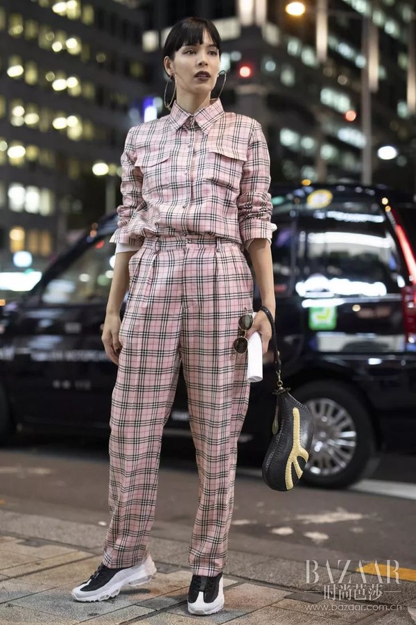 彩色格纹的衬衫与长裤,同样是今年秋冬流行的搭配,随性的休闲时髦。