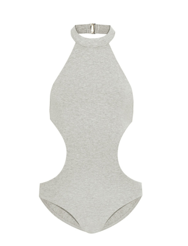这种腰部镂空的挂脖式泳衣只适合腰部完全没赘肉的纸片人女生,不过穿好了又特别又显身材好哦。