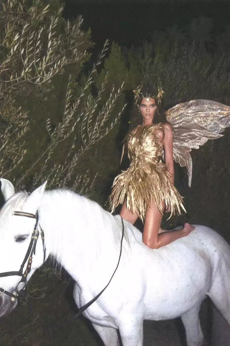 生日和万圣节一起过的Kendall,变身丛林仙女,骑着白马寻找自己的白马王子。
