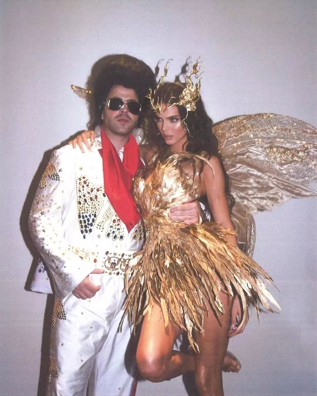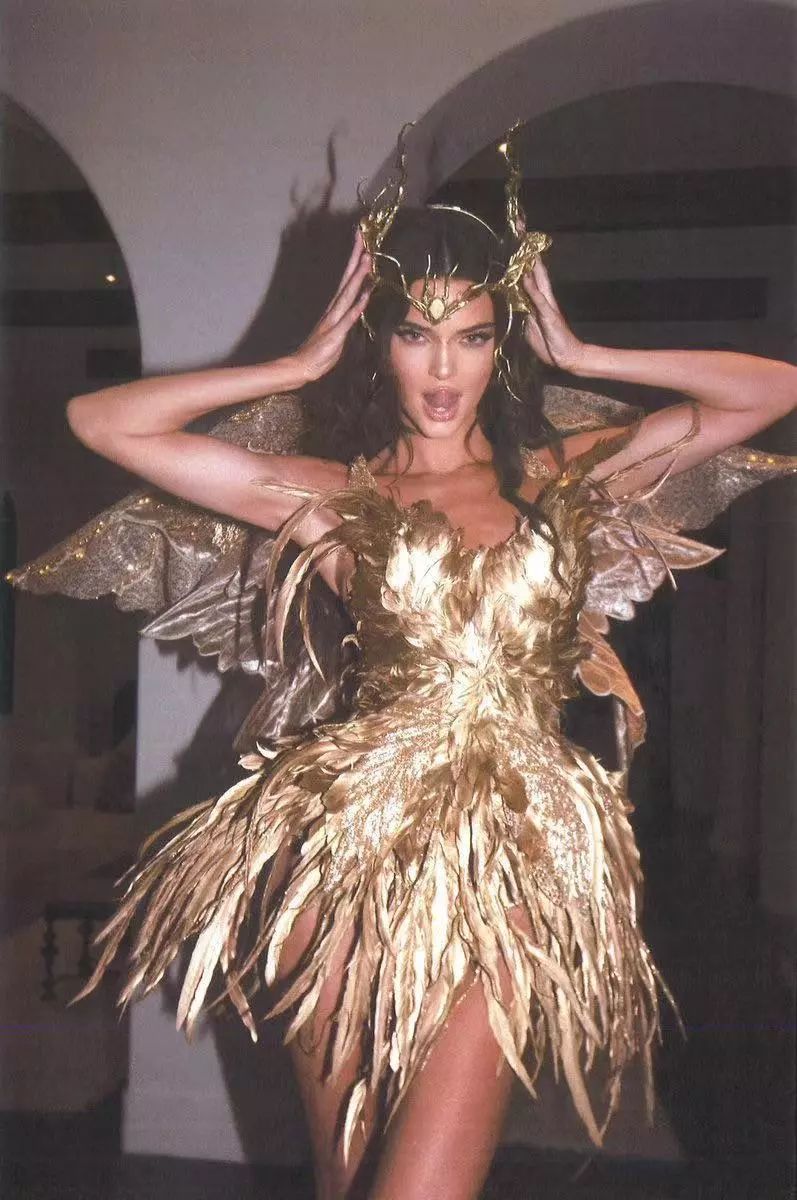 金色羽毛拼接的连衣裙配上金丝翅膀,是被试了魔法吗?在夜晚还这么闪耀。这腰细的,一只手就可以揽入怀中。