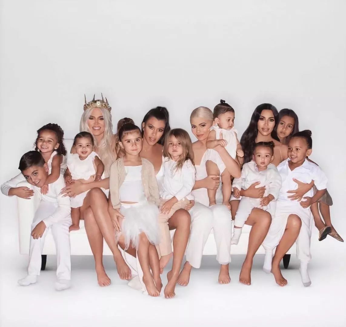 不知道你有没有发现,卡戴珊家族很喜欢白色的Dress Code,去年🎄四姐妹和娃们的大合照中,13个都是all white打扮。