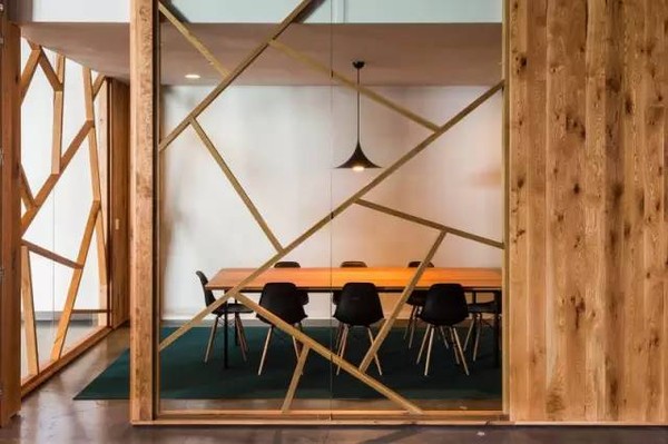白橡木的调色板在整个空间使用,并在休息室和厨房区域内用深色染色处理,灵感来源于客户对中世纪家具的热爱,白橡木也被用来创建定制工作站