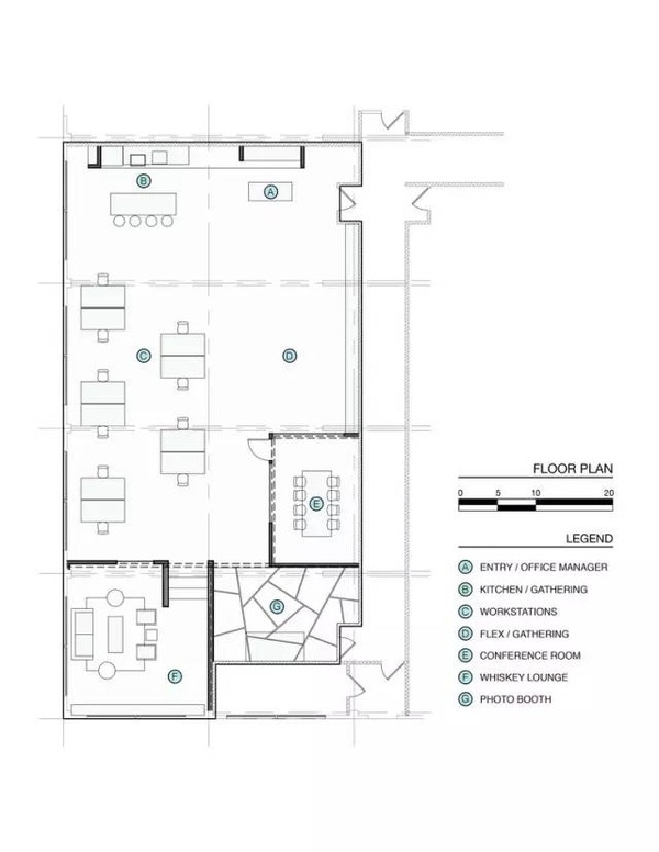 BeFunky 是一个做照片编辑软件开发的公司,位于波特兰的一个工业桁架仓库中,租户接到将近300㎡的房屋后,改造出:开放式办公室、会议室、威士忌酒廊和厨房以及会议区