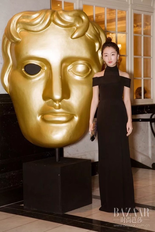 周冬雨参加晚宴就穿了一件黑色削肩裙,让她纤细的小骨架也显出玲珑有致~