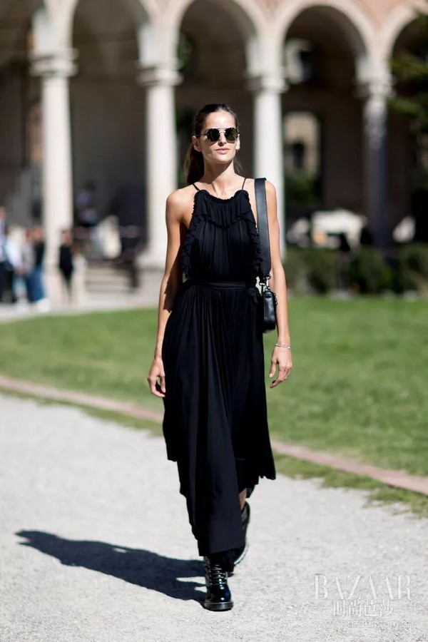 不过腰身的塑造仍然十分重要!一条露腰的削肩连衣裙就能“简单粗暴”地帮你优化上下身的比例。