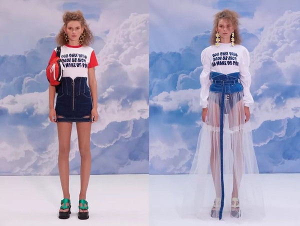 Chrisou by Dan的设计有一个很有趣的特点,衣服上的标语从不给人喧嚣的怒意,反倒是充满了浪漫的诗意,比如“God only,who made us rich,can make us poor”、和“my day of youngth went yesterday”,这些摘自文学作品中的语句在欧阳丹看来亦是一种品牌态度的表现。