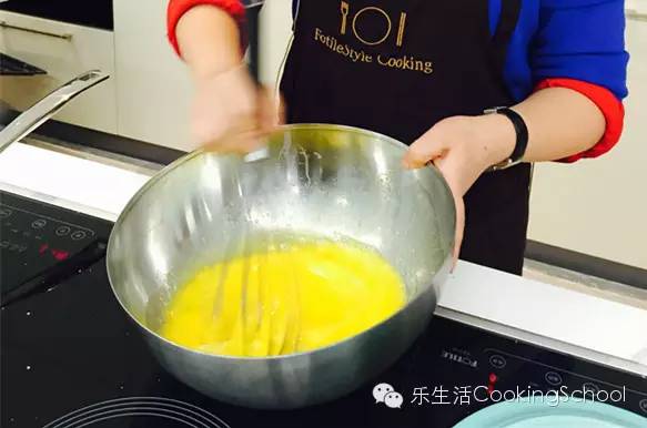 Step 3将香草荚划开,小心地刮出膏脂放入料理盆中,加入鸡蛋、蛋黄、糖,轻搅散。