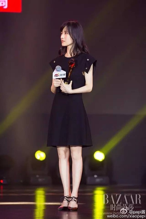 再看她领奖的时候,个子不高的她也没穿很高的高跟鞋,但是身材特别好,腿又长又直的,不过papi酱瘦我们一直知道,但是你们注意看她的脸。